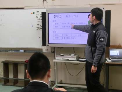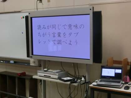 導入では、イラストの間違いさがしで授業に対する集中力を高め、ワークシートの問題を電子黒板とパソコンを使って、取り組みました。