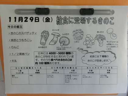 11月最後の給食は、きのこのスパゲティです!