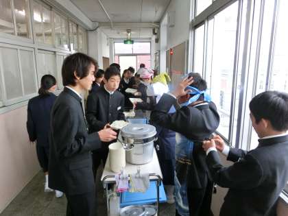 午前の授業が終了し、給食の配膳時間となりました。