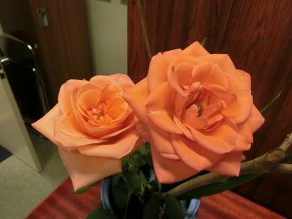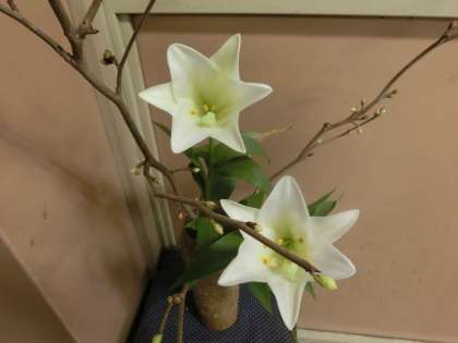 活け花のバラ、そしてユリ。