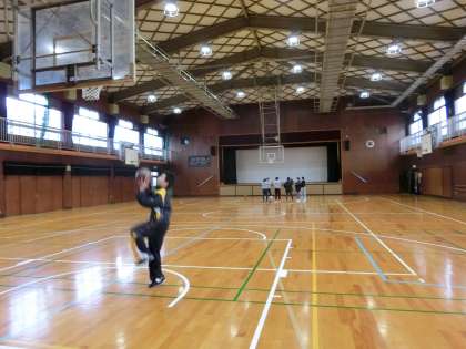冷え切った体育館の中ですが、今朝もバスケットボール部が練習を頑張っています。