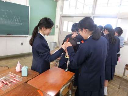 人形を使って、髪の毛のお手入れをご指導いただきました。