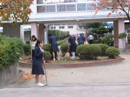 美化委員会では、会議後に、落ち葉がたまった中庭を、キレイに掃除してくれました。