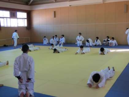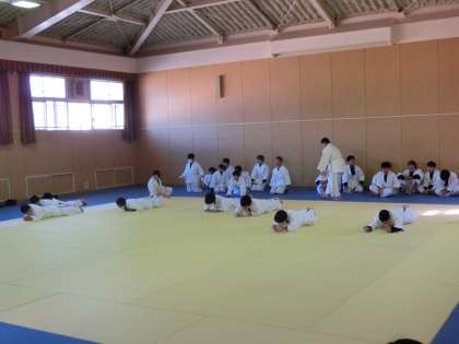 格技室での柔道の授業です。