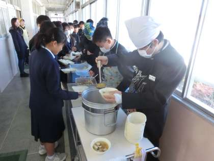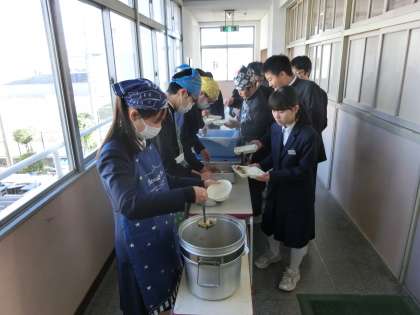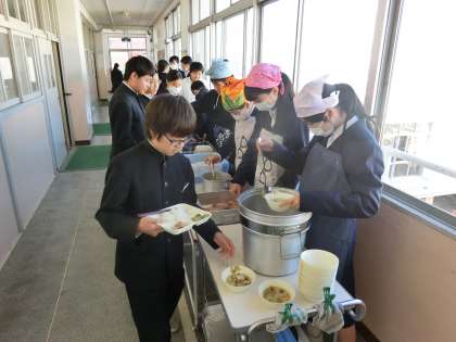 午前の授業が終了し、お待ちかねの給食の時間です。