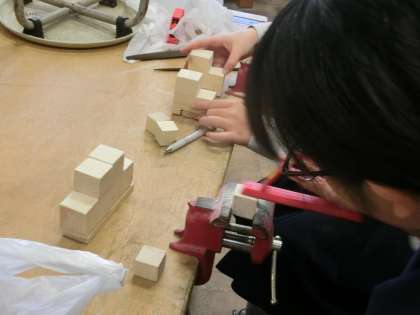 サイコロ状の立方体が、切られたり削られたり加工されていきます。