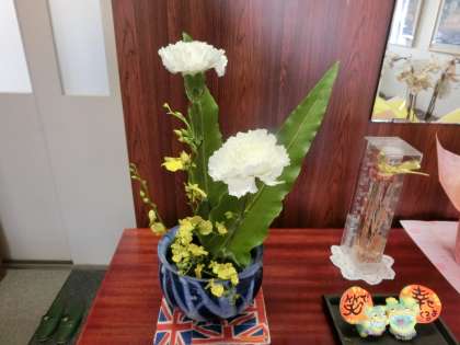 昨日、地域ボランティアの皆様に、新しく活け花を飾っていただきました。