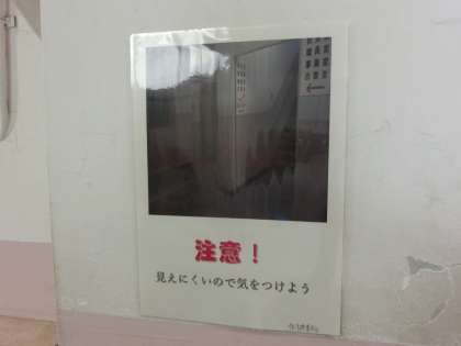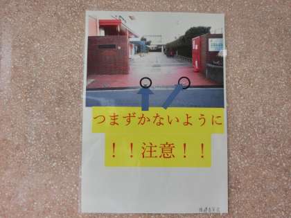校内でケガをしないように、保健委員会から注意の写真が掲示されています。
