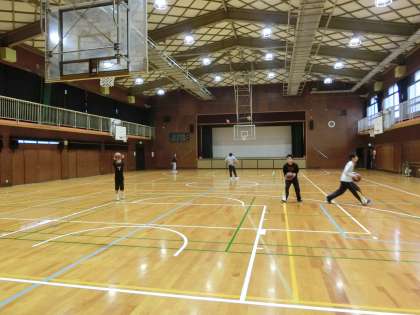 今朝もバスケットボール部が練習に汗を流しています。