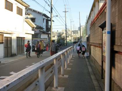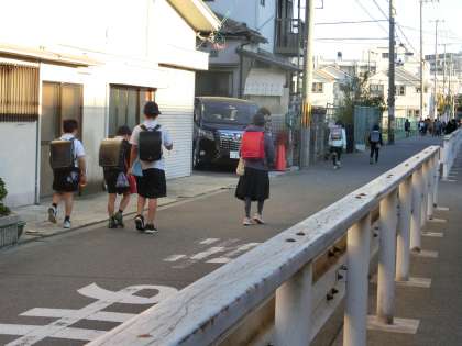 太陽が輝く中、児童さん、生徒たちが元気に登校してきました。