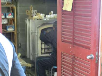 いよいよ自画像彫刻の窯入れです。
