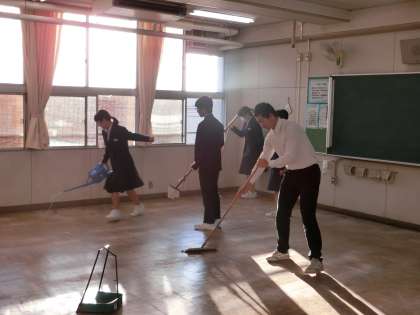 本日、放課後の清掃時間に、教室のワックスがけを行いました。