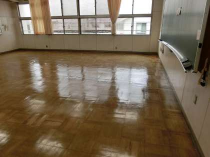 昨日の教室のワックスがけ。