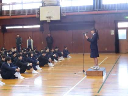 長い間、生徒会執行部が努力し、学級会や生徒議会で議論を重ね、ようやく防寒具の「マフラー、ネックウォーマー」が試行される運びとなりました。