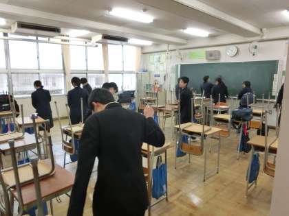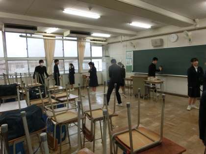 午前の授業を終えて、3年生は短学活・清掃で下校します。
