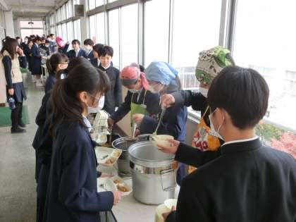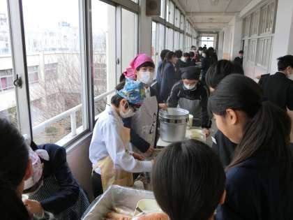 係生徒の配膳準備がすすみます。