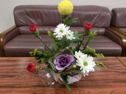 本日、生涯学習において「フラワーアレンジメント教室」が行われ、ステキなお花が飾られました。