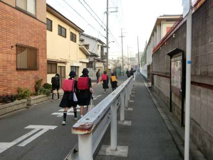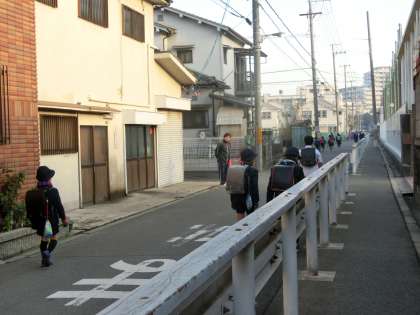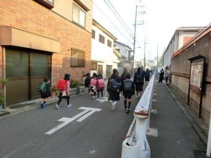 今朝も元気良く、児童さん、生徒たちが登校しています。