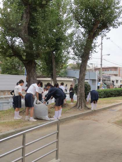 生徒会主催で今年度2回目の地域清掃活動を実施しました。10月31日(金)の放課後、地域清掃活動に参加する生徒がグランドに集合して、生徒会の生徒の指示のもと、西長居公園と北グランド周辺に分かれて地域清掃活動を行いました。学校とともに自分たちが住む地域をきれいにしたいという気持ちをいっそう育んでくれることを期待します。