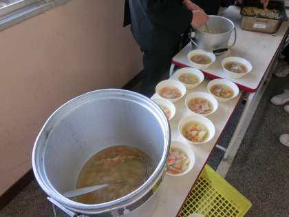 大根スープは、鶏肉、じゃがいも、にんじん、枝豆も入っていて、とても具だくさん。