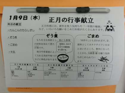 「白みそ仕立てのお雑煮」「ごまめ」「れんこんのちらしずし」です。