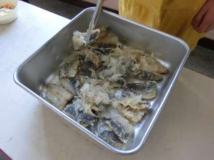 鯵のレモンマリネも美味で、食パンに挟んでいただきました。