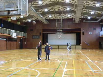 とても冷える体育館ですが、今朝もバスケットボール部が練習を行っています。