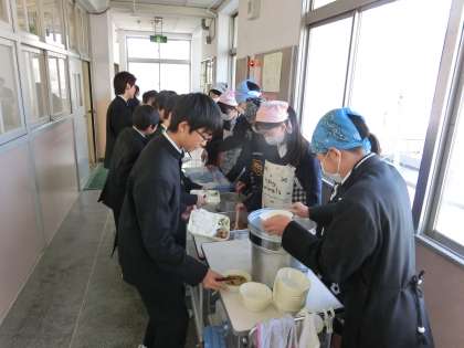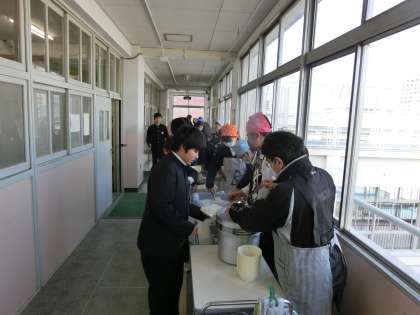 4時間目の授業が終了し、給食の配膳時間となりました。