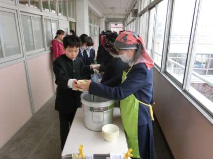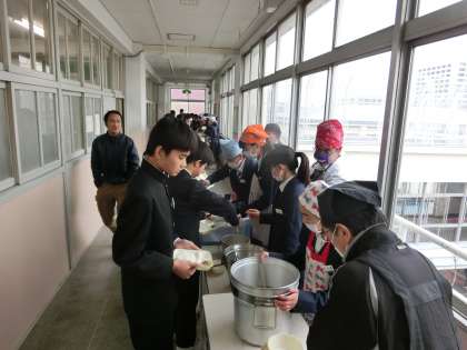 午前の授業が終了し、給食の配膳時間となりました。