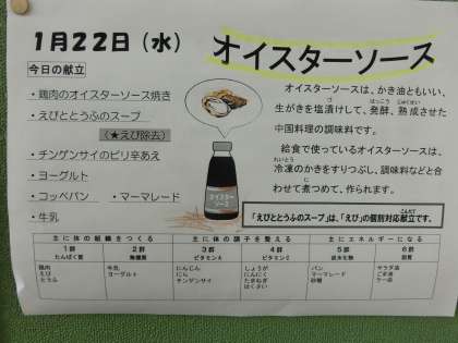 「鶏肉のオイスターソース焼き」「えびと豆腐のスープ」「チンゲン菜のピリ辛あえ」です。