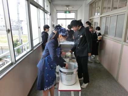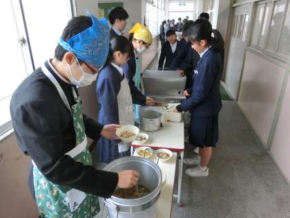 エビと豆腐のスープから、温かい湯気が立ち込めます。