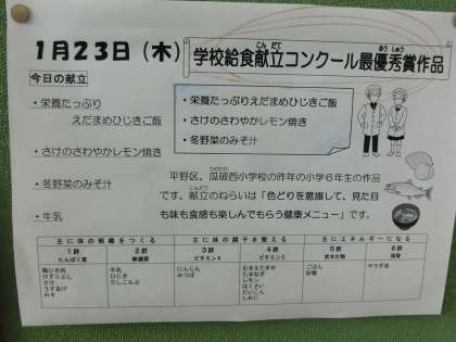 本日の給食は、給食の献立コンクールの最優秀作品でした。