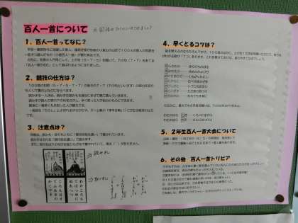 本日予定されていた、2年生の「百人一首大会」及び明日予定されていた「学校保健委員会」は、2年学年休業のため、延期します。