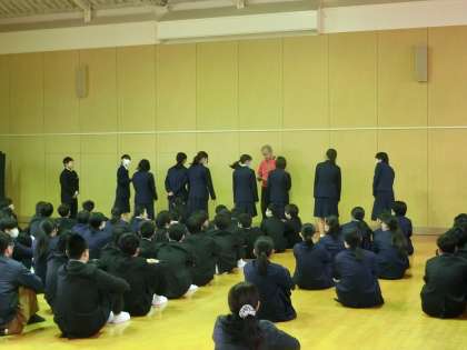 今朝は、先日の百人一首大会の表彰がおこなわれました。