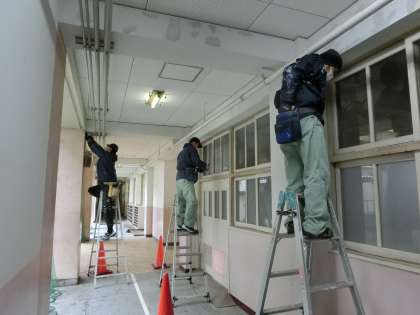 1階廊下の壁面の塗装が、営繕作業班の皆様の手で、本日より行われ始めました。