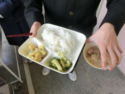 本日は、「温かかす汁」に「ブロッコリーのしょうがづけ」「栗きんとん」。