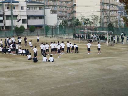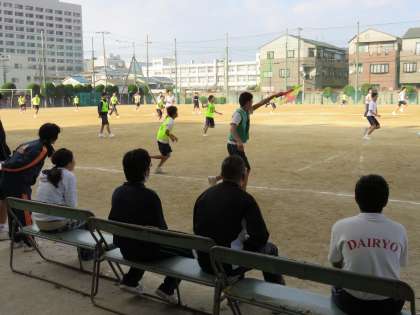 3年生男子はサッカーで大いに盛り上がっていました。最後はドッジボールを終えた女子の応援も加わり、大歓声が職員室まで鳴り響いていました。今年の3年生は、とても運動能力に優れているようです。この力をこれからの受験勉強にも生かして、それぞれの進路を力強く歩んでくれるよう希望しています。頑張ってください。