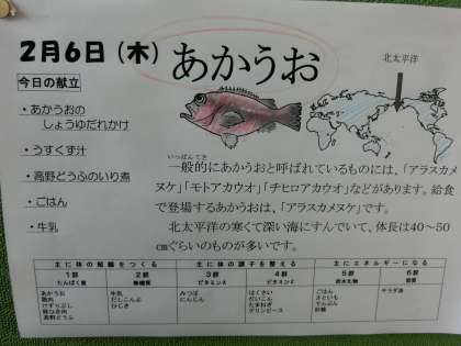 今日のメニューは「赤魚の醤油だれかけ」「野菜たっぷりうすくず汁」「高野豆腐の炒り煮」です。