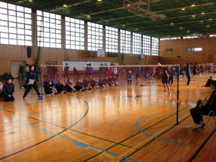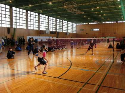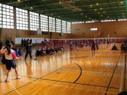 とても広い体育館で、各校の選手のラケットの音が、響いています。