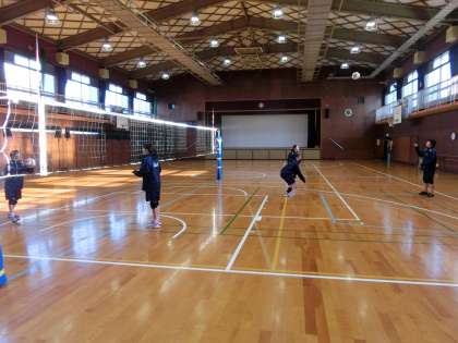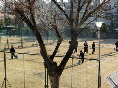 グラウンドでは、テニス部男子が準備開始。女子は試合に出かけました。