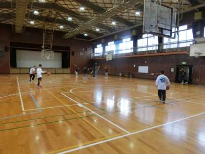 今朝も冷える体育館で、バスケットボール部が活動しています。