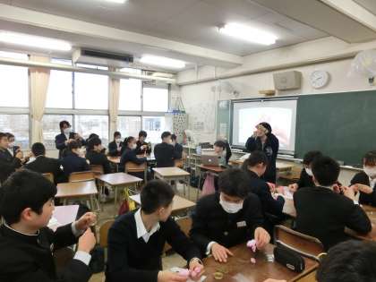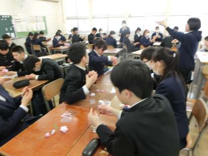 卒業生一人ひとりの胸を飾るコサージュづくりです。