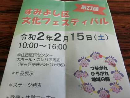 本日、住吉区民センターにおいて、「すみよし区文化フェスティバル」が開催されています。