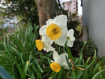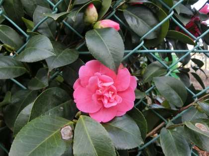 寒さの中で、しっかりと主張する寒椿や水仙。