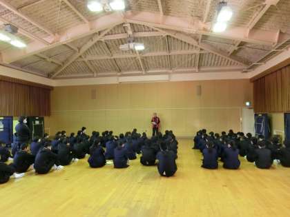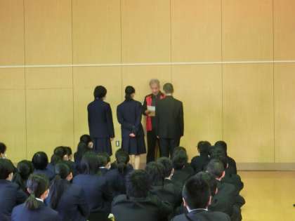 今朝は、マラソン大会に代わって行われたドッヂボール大会の表彰がおこなわれました。