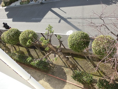 本校は、中庭もあり、校舎まわりの樹木もたくさんあって、一年中剪定が必要となります。