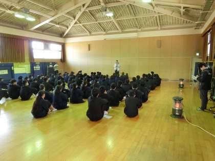 今朝は、本日の福祉体験学習、そして、班学習・班行動についてお話がありました。