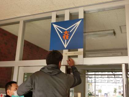 立派な横断幕と、正門にきれいな校章が飾られました。
