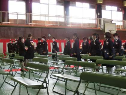 式場を後にし、卒業生は教室で最後の学活を終え、花道を通って巣立って行きます。