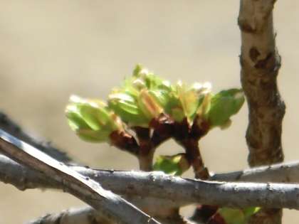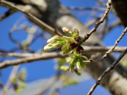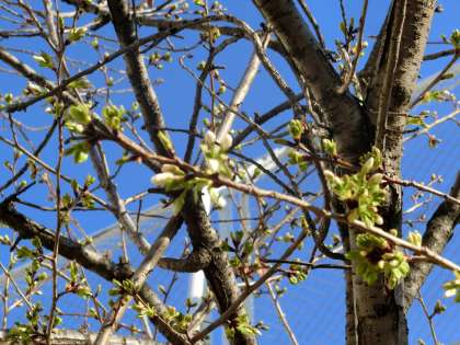 春の暖かさで、一気につぼみが膨らみ、白の花が姿を現そうとしています。